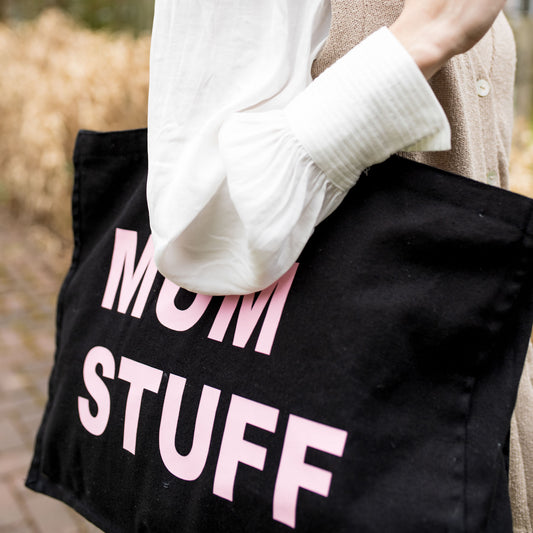 PERSONALISED BLACK TOTE WITH BABY PINK PRINT