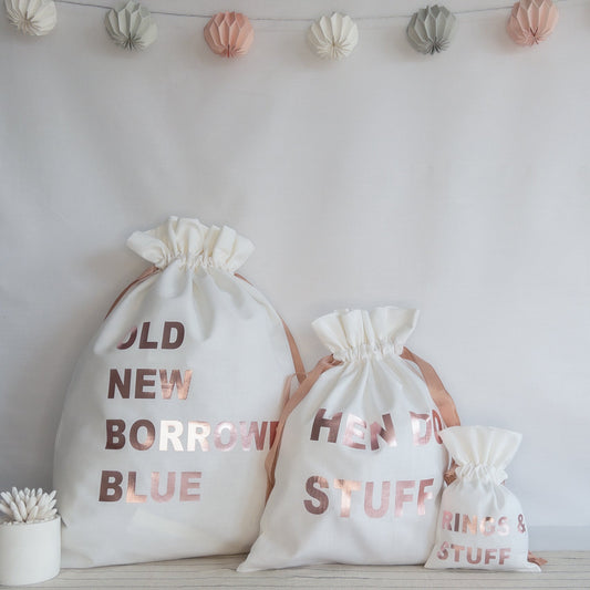 PERSONALISED LARGE WHITE DRAWSTRING WEDDING BAG