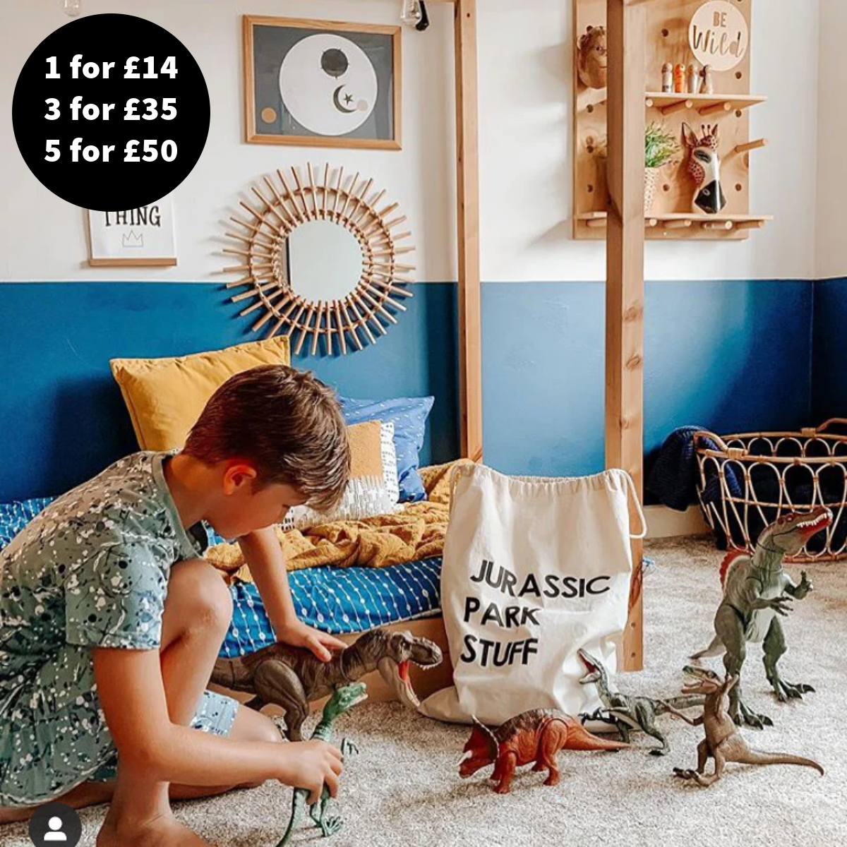 These large drawstring bags are perfect for storing away items and organising play rooms.