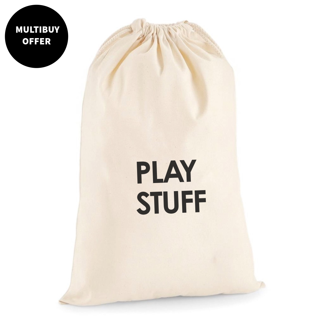 Tidy up all the fun with our versatile PLAY STUFF drawstring bag! Available in three sizes and two colours, it’s perfect for storing toys, games, and all the bits and pieces that make playtime amazing.